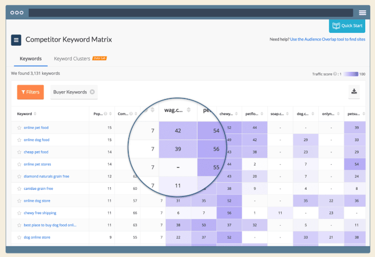Trouvez les habitudes de consommation dans votre catégorie — et au-delà — cet outil ouvrira la porte à un nouveau monde de perspectives. C’est ainsi que fonctionne Quantcast, vous donnant accès aux audiences d’autres marques et vous montrant comment elles peuvent également vous appartenir. Le trafic vers des sites concurrents est également inclus.