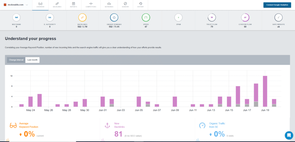 Vous voulez connaître vos performances backlink — ou mieux encore, celles de vos concurrents ? Monitor Backlinks vous dit tout, et même vous informe sur l’aspect SEO. Découvrez quels mots-clés sont bien classés dans Google, quels liens sont précieux et quels pourraient nuire à votre marque.