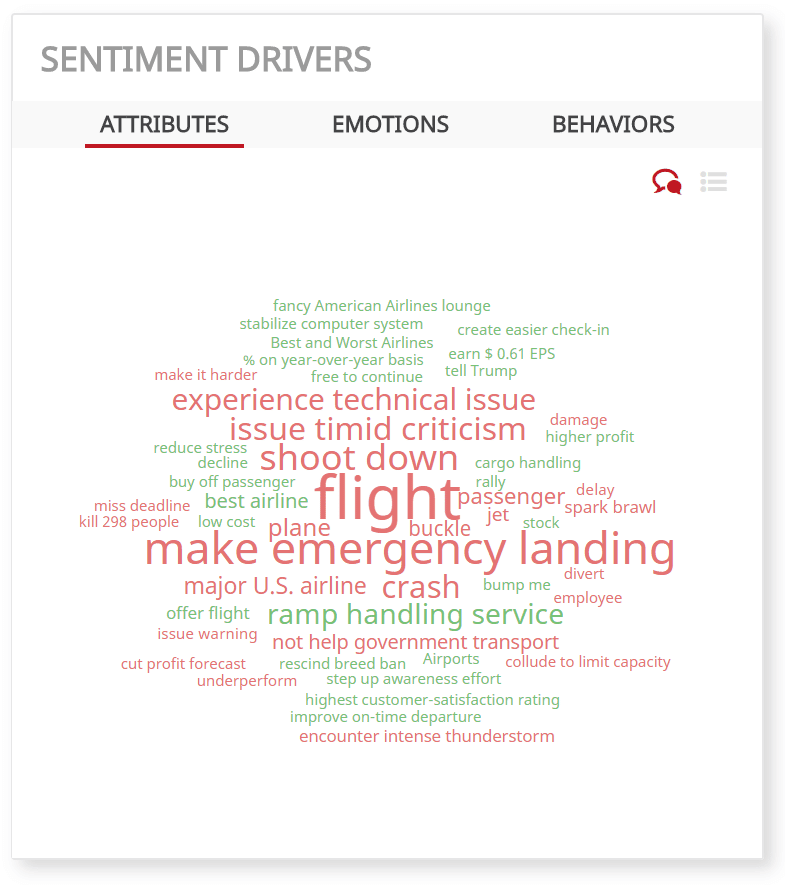 Le domaine d’excellence de NetBase est l’analyse du sentiment des consommateurs dans chaque thème, chaque méthode. Que vous soyez intéressé par l’écoute sociale pour comprendre l’audience de votre concurrent, la surveillance des médias sociaux pour savoir quand telle ou telle action clé a lieu, l’analyse des images pour comprendre quand les marques apparaissent en arrière-plan, ou l’analyse de l’expérience client pour relier tous ces éléments ensemble, vous saurez exactement où l’amour, la haine, et comment intervenir. pour retourner cette affection en faveur de votre marque. Vous saurez également quelle place est votre place par rapport aux autres membres de votre catégorie — et surtout pourquoi.