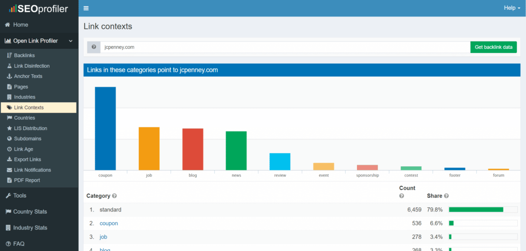 Les sites Web des concurrents contiennent une mine de données que vous pouvez appliquer à votre propre site, et des outils tels que Open Link Profiler vous aideront à les trouver. Consultez les liens de retour, le texte d’ancrage, les pages, les industries qui contiennent des liens vers les marques que vous recherchez, les catégories de liens menant à vos concurrents, le pourcentage de sites Web menant à vos concurrents par Link Influence Score (LIS), et plus encore.