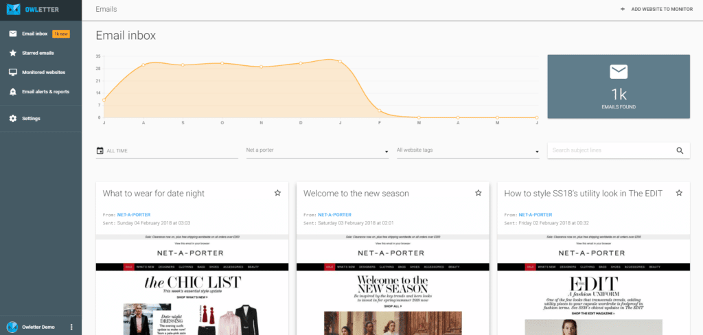 Analysez la stratégie de messagerie de vos concurrents avec Owletter. Comprenez quand ils envoient leurs courriels promotionnels, quels sont les changements saisonniers, s’ils ont la réputation d’envoyer des SPAM, etc. Utilisez des informations sur les tendances concurrentielles, entre autres, pour planifier vos propres envois et obtenir les meilleurs résultats possibles.