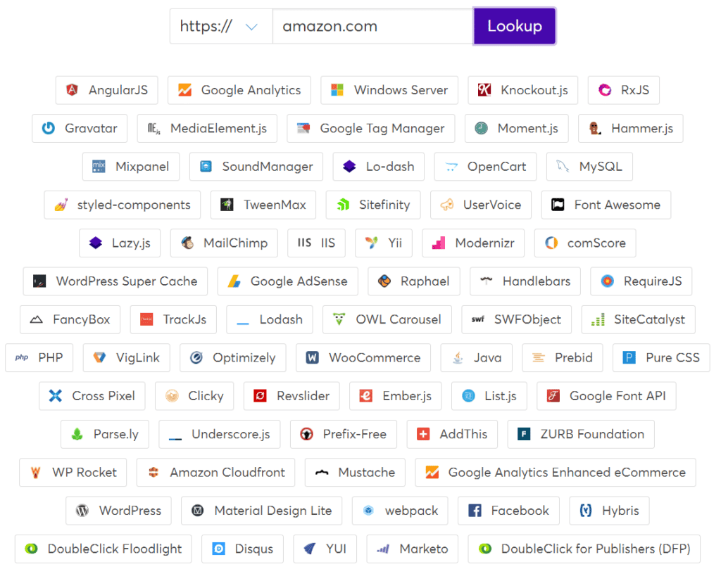L’ analyse concurrentielle doit couvrir autant de terrain que possible — c’est pourquoi les outils qui sortent de l’univers de l’intelligence sociale sont également utiles. Wappalyzer est un outil capable de trouver « 1074 différentes technologies web ». Cela inclut des logiciels tels que les systèmes de gestion de contenu, les plateformes de commerce électronique, les structures Web, les logiciels de serveur, les outils d’analyse, etc. flux de données ? Cet outil vous le dira.